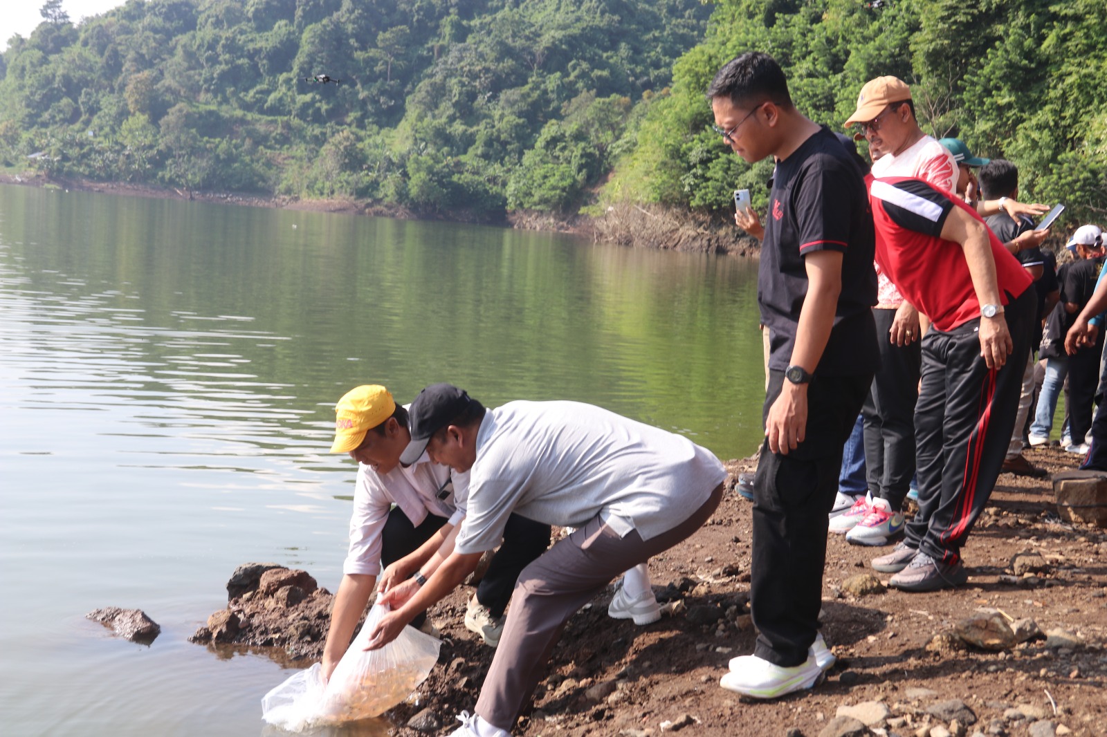 Pada kesempatan tersebut dilakukan penebaran sekitar 30.000 ekor benih ikan nila ke perairan bendungan sebagai bagian dari upaya menjaga kelestarian sumber daya perikanan sekaligus meningkatkan potensi ekonomi masyarakat di sektor perikanan.